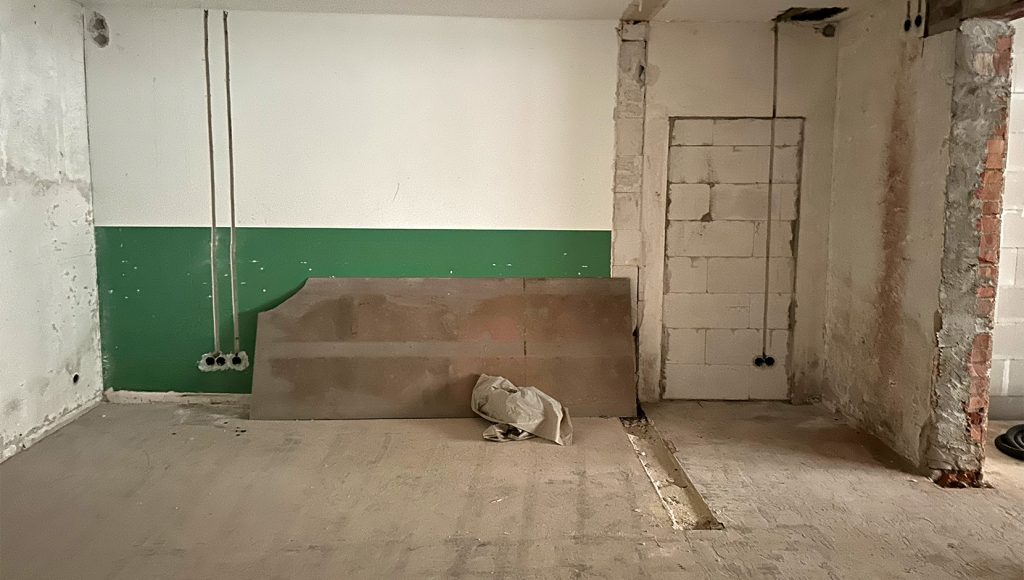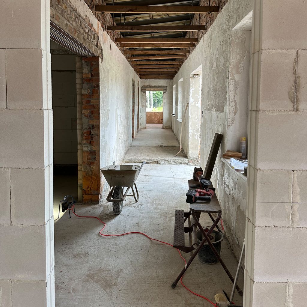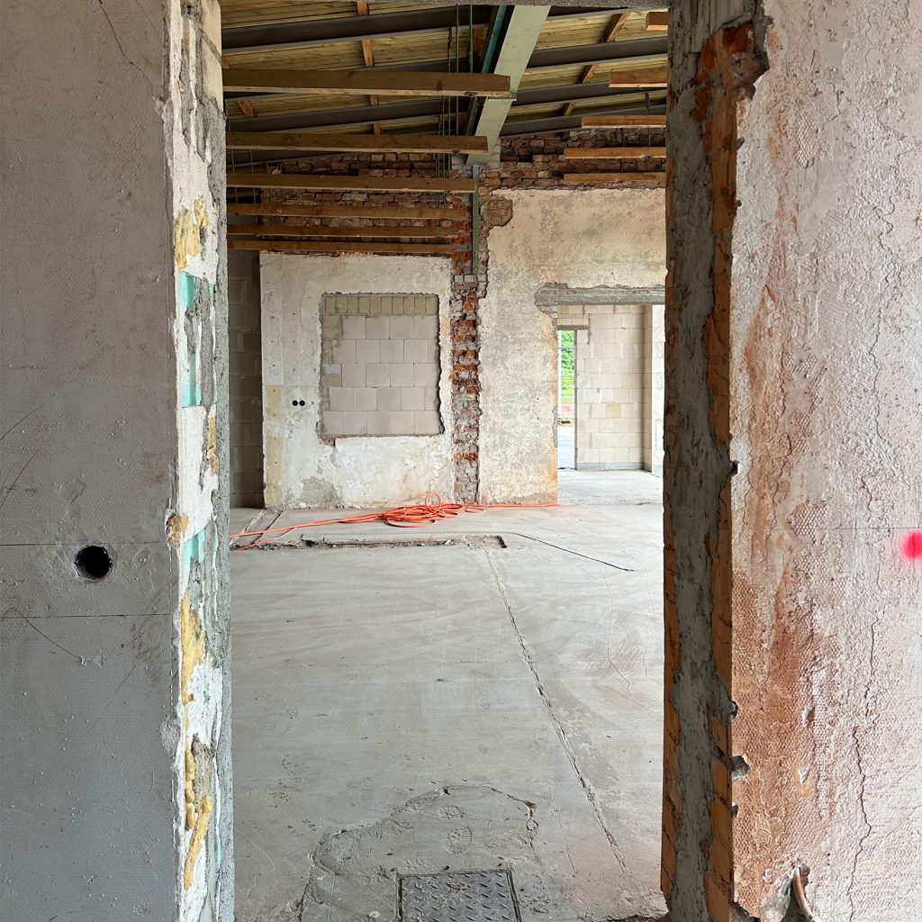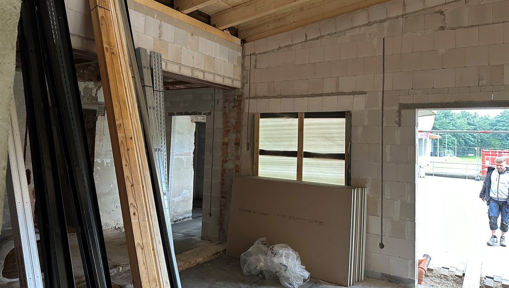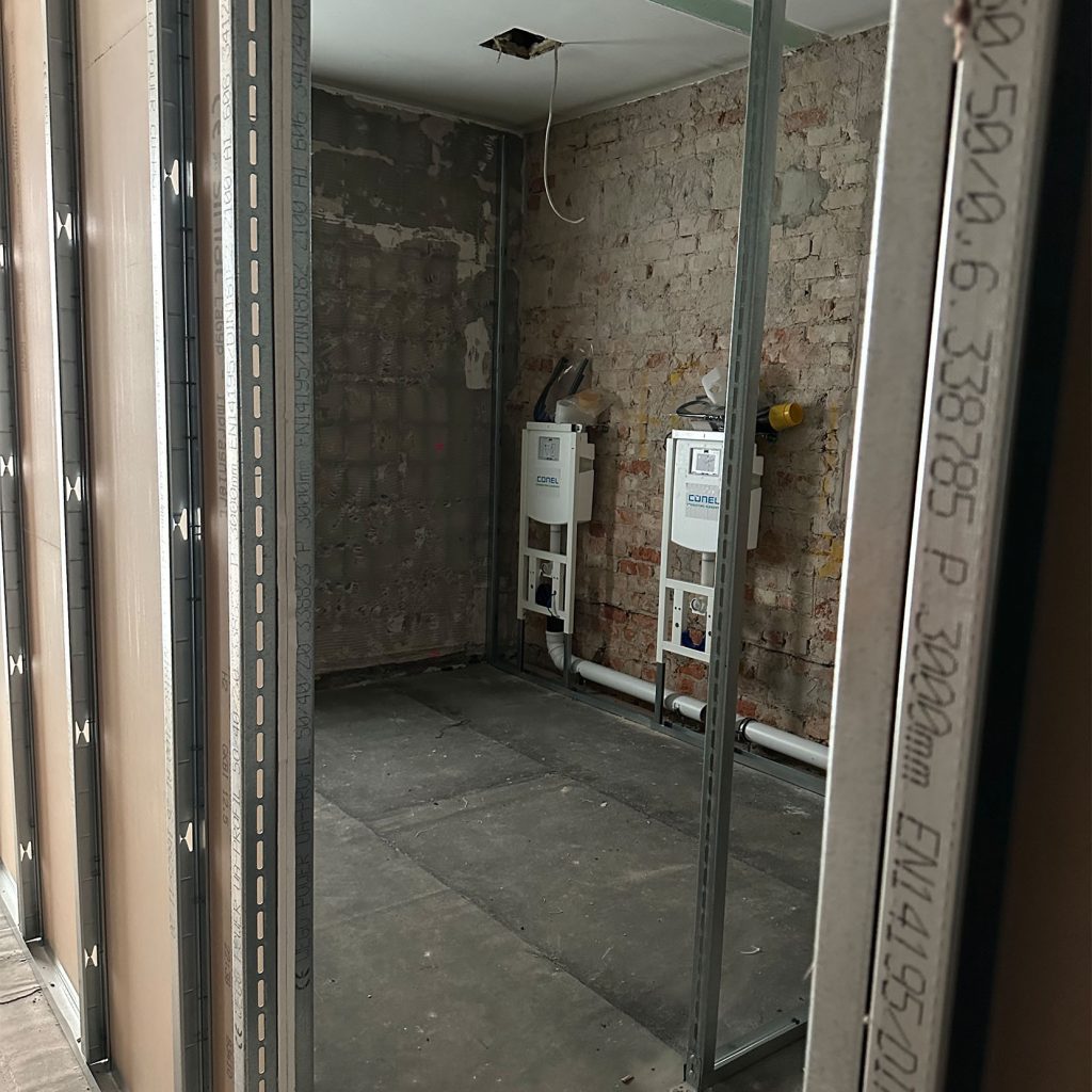 … der Ausbau schreitet voran; die Leichtbauwände sind gestellt und einseitig beplankt, damit können die Vor-Installationen durchgeführt werden
