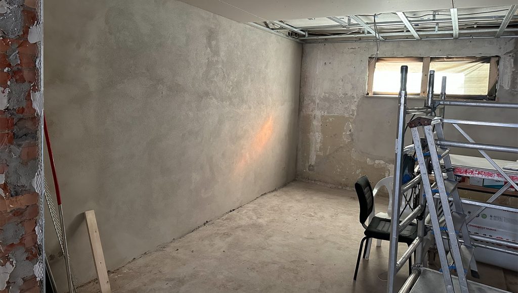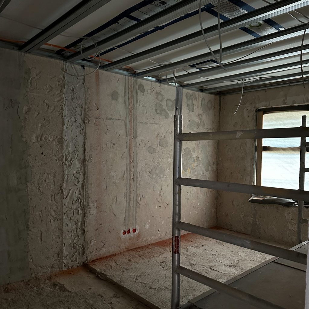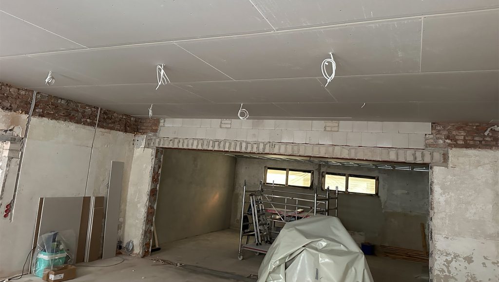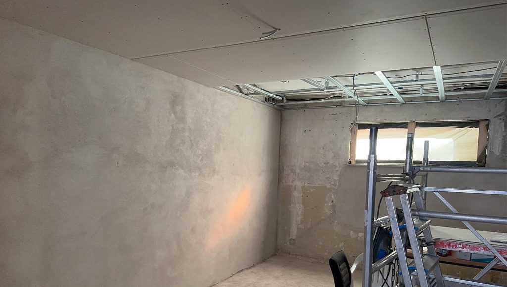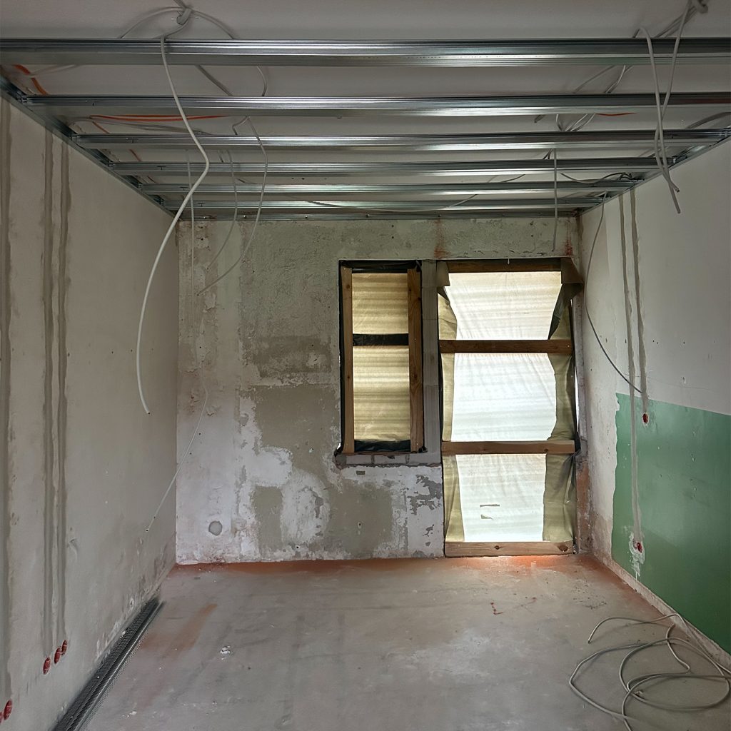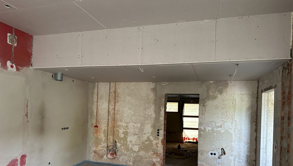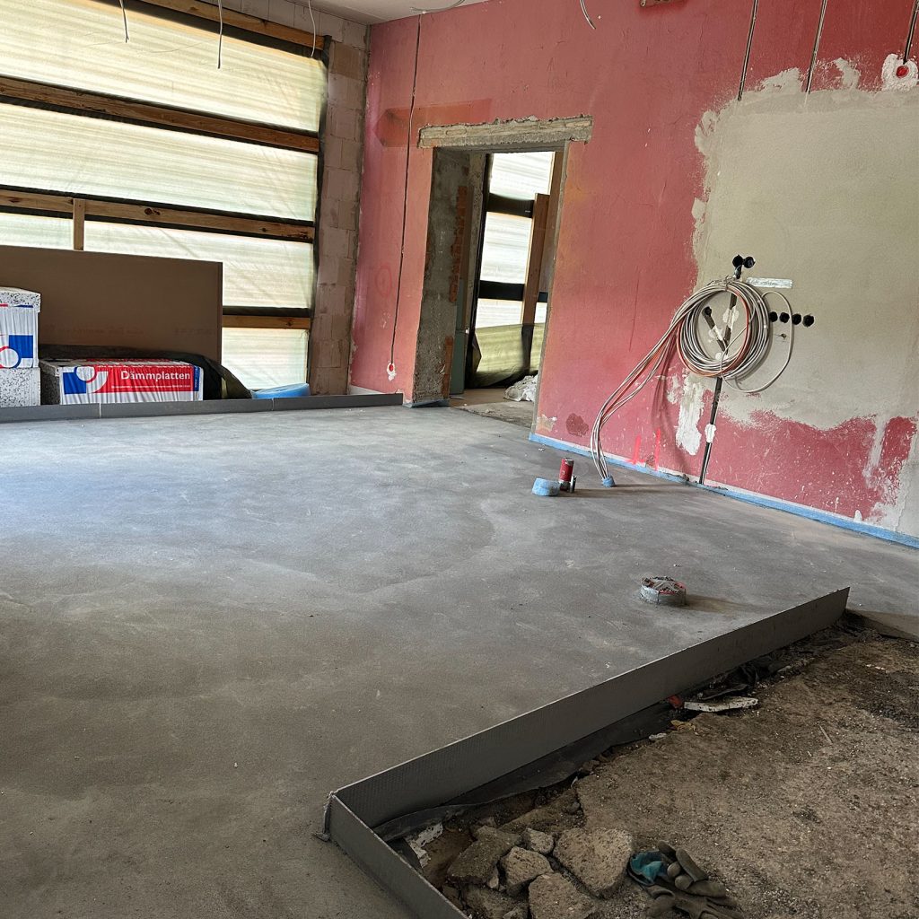 … aber der Putzer ist endlich so gut wie durch, der Estrich ist verlegt und die Rigips-Decken sind weitestgehend geschlossen