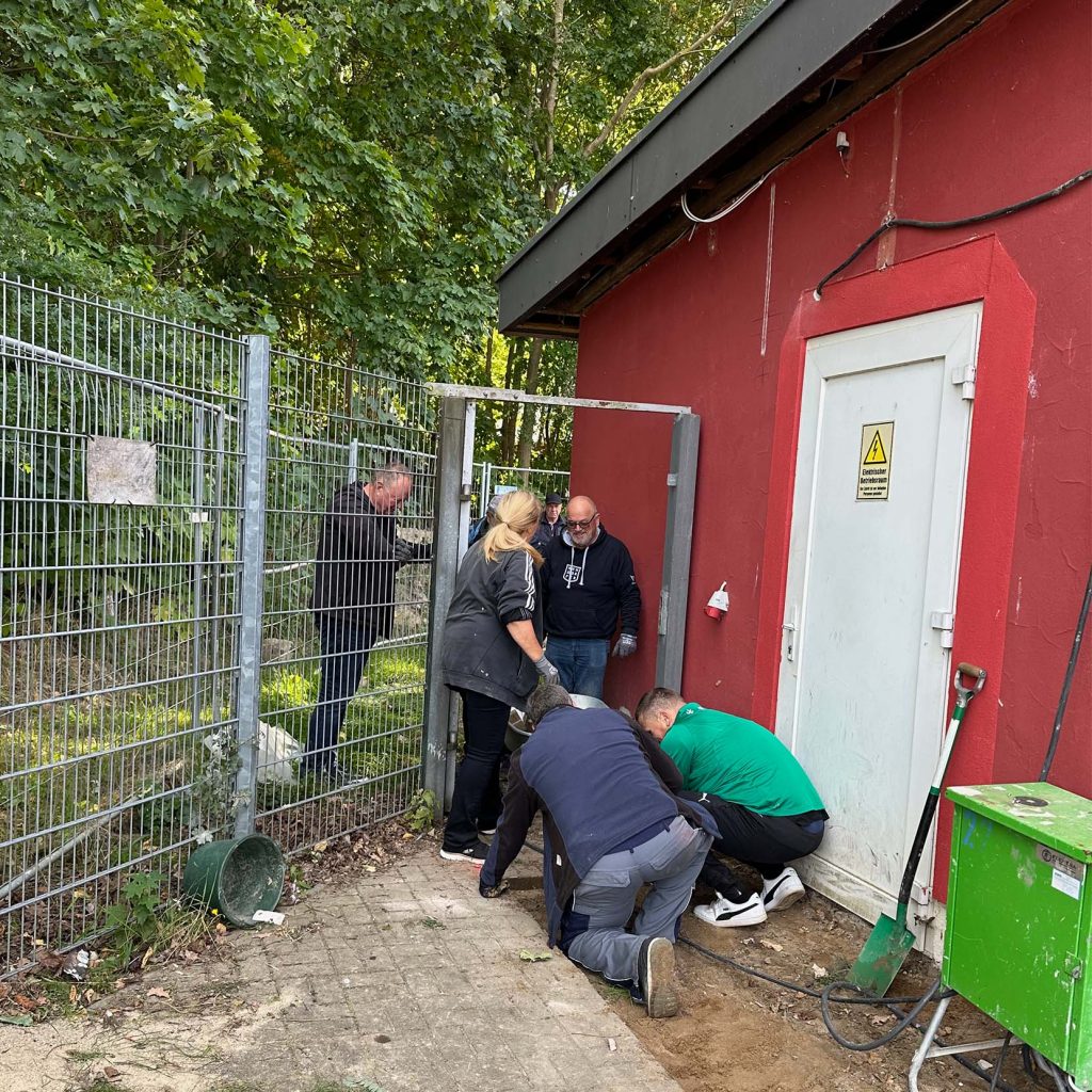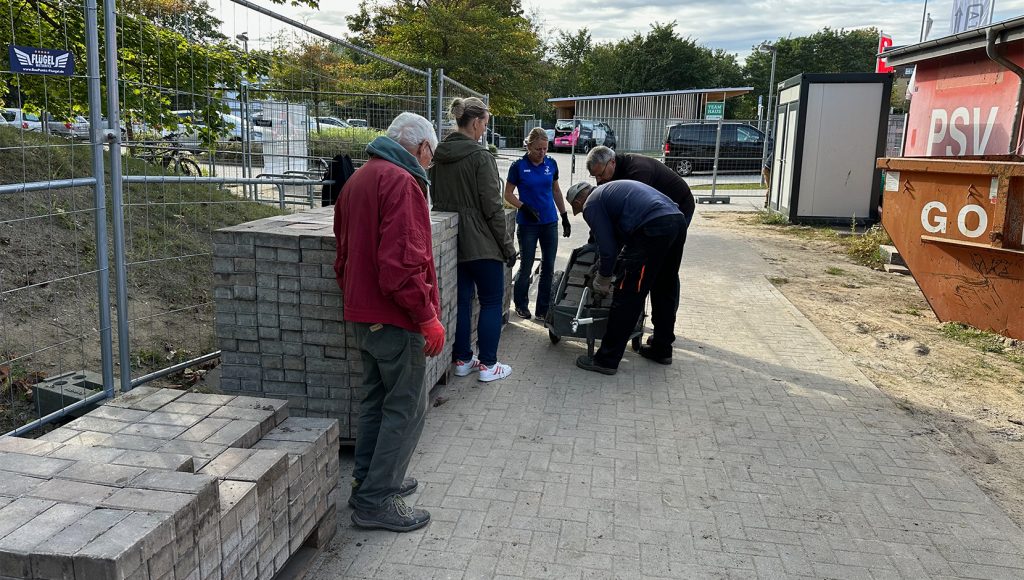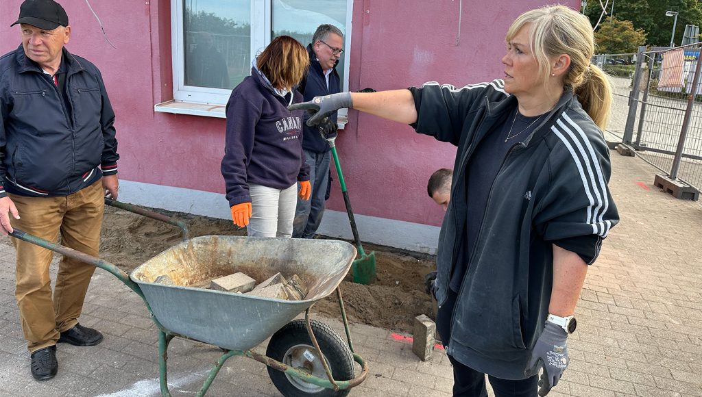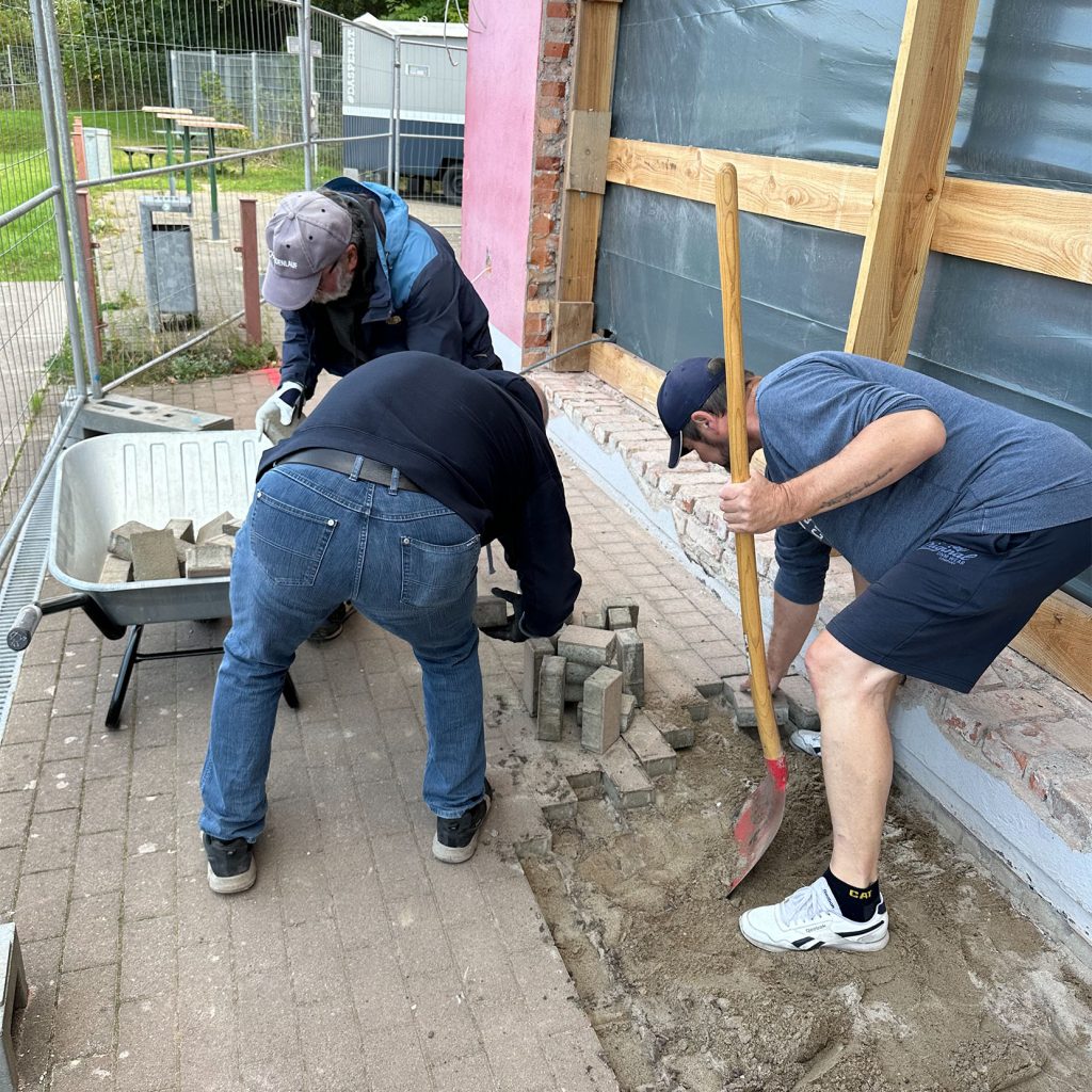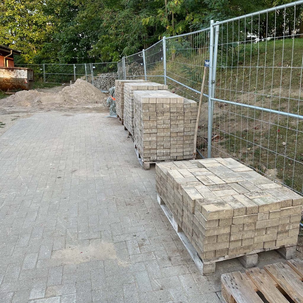 … wir waren wieder fleißig … relativ kurzfristig galt es das Pflaster aufzunehmen … gesagt getan, kurzer Aufruf und am Freitag den 26. September standen wieder gut 20 fleißige Helfer bereit, Grund waren Aushuarbeiten für die Montage des WDVS … einmal ringsum gut einen Meter breit Pflaster aufnehmen und auf Paletten stapeln … wie heißt es so schön: vieler Hände schaffen ein schnelles Ende … und so war es auch, nach knapp zwei Stunden war die Arbeit getan und alle fleißigen Helfer konnten ins wohl verdiente Wochenende starten!