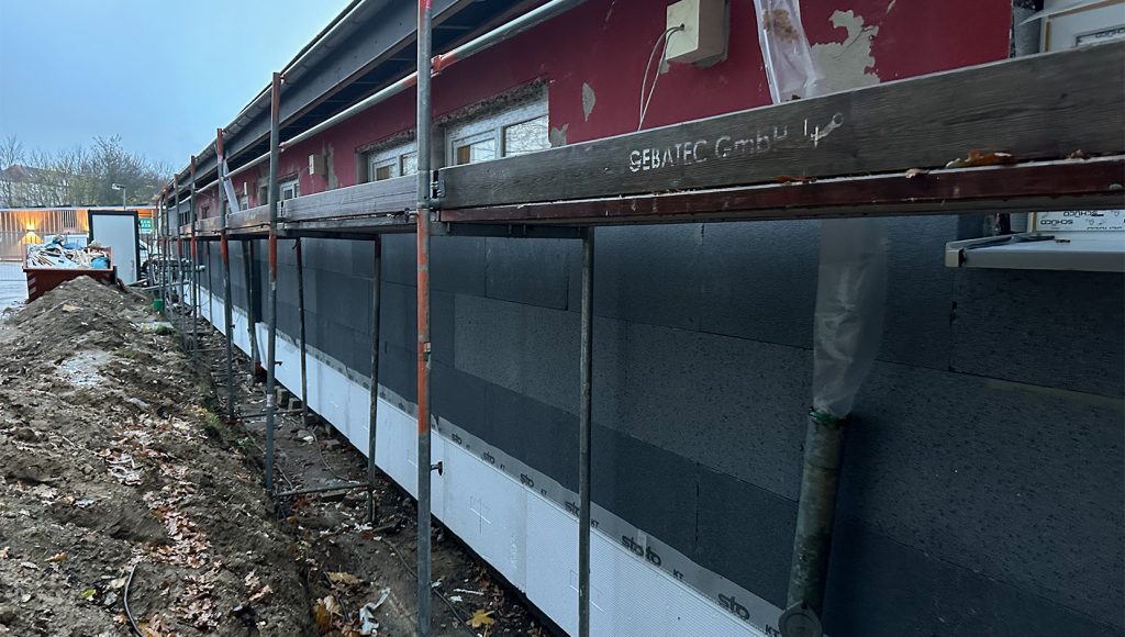 … um den Außenputz muss er sich aber vorerst keine Gedanken machen, denn der WDVS-Spezi kommt nicht so richtig aus den Puschen; jetzt macht ihm natürlich auch noch das Wetter einen Strich durch Rechnung – wer konnte auch damit rechnen, dass wir Mitte November nicht konstant mehr als 5 Grad haben … egal, muss er halt dübeln statt kleben (muss er sowieso machen, denn die Dämmplatten müssen nach dem Kleben noch Verdübelt werden) – fachlich versierte Leser*innen wissen das natürlich 😉