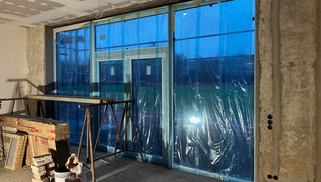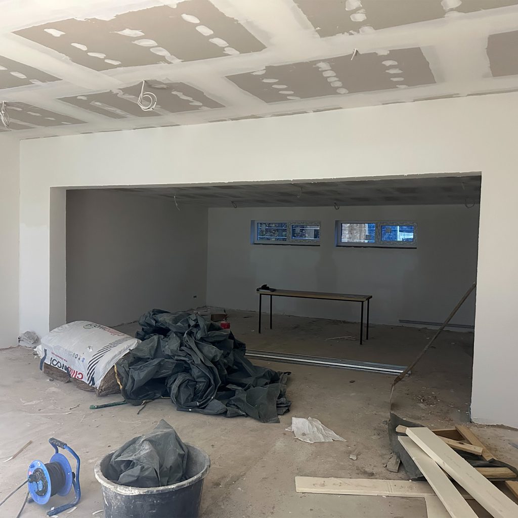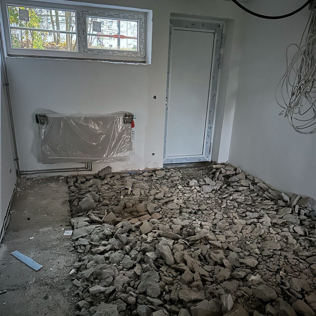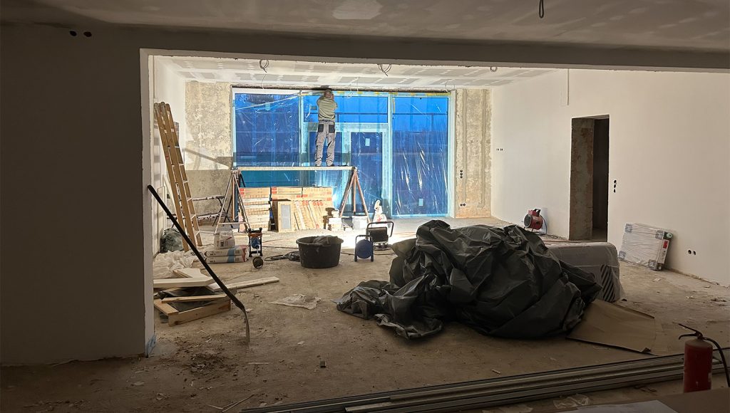 … es fehlen nach wie vor die Fensterbänke ohne die der Maler seine Arbeiten nicht abschließen kann; dieser beginnt jetzt aber mit den Decken und macht dann mit dem Anstrich der Wände weiter